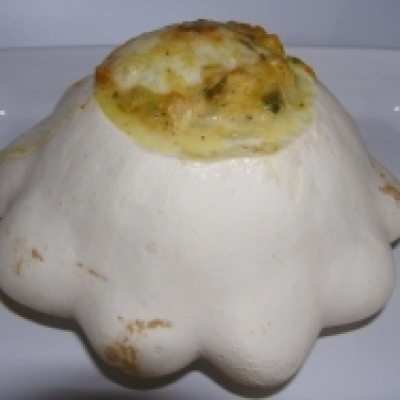 Közepes nagyságú tepsit egy evõkanál olajjal kikenünk, és a zsemlemorzsával behintjük. A meghámozott és kimagozott patisszont almareszelõ durva fokán lereszeljük, majd tálba öntjük. Megsózzuk, és tíz percig állni hagyjuk.