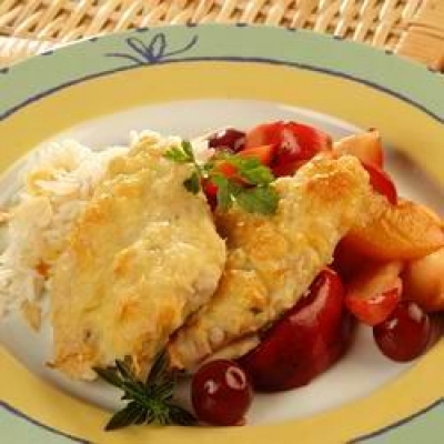 Köretnek vágott mandulával elkevert rizst és gyümölcsragut vagy kompótot adhatunk.