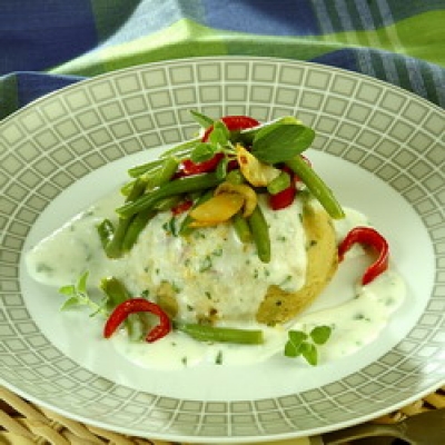 Egy tepsibe állítjuk a formákat, és annyi vizet öntünk köréjük, hogy a víz a formák háromnegyedéig érjen. A sütõben keményedésig, kb. 40-50 percen át pároljuk. Amikor elkészült, kivesszük, és kiborítjuk. A tormamártással és a paprikás zöldbabbal kínáljuk.