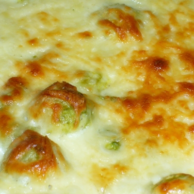 Kihûtjük, majd eldolgozzuk benne a 4 tojássárgáját, sóval, borssal, szerecsendióval ízesítjük. A besameles kelbimbó tetejét megszórjuk reszelt sajttal, és 25-30 percig sütjük.